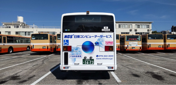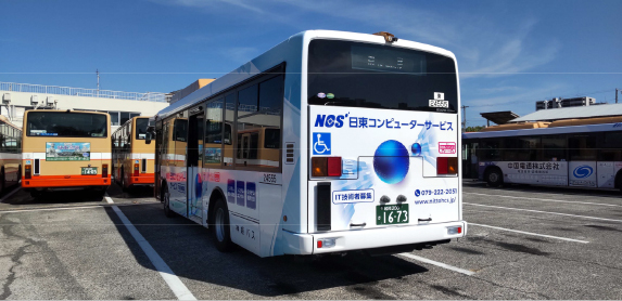 姫路市内に当社オリジナルデザインのラッピングバスを運行し、街なかでのプロモーションや地域とのつながりを広げています。